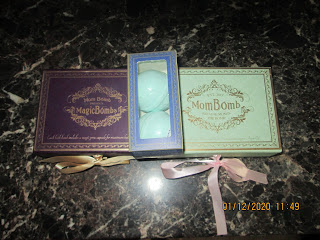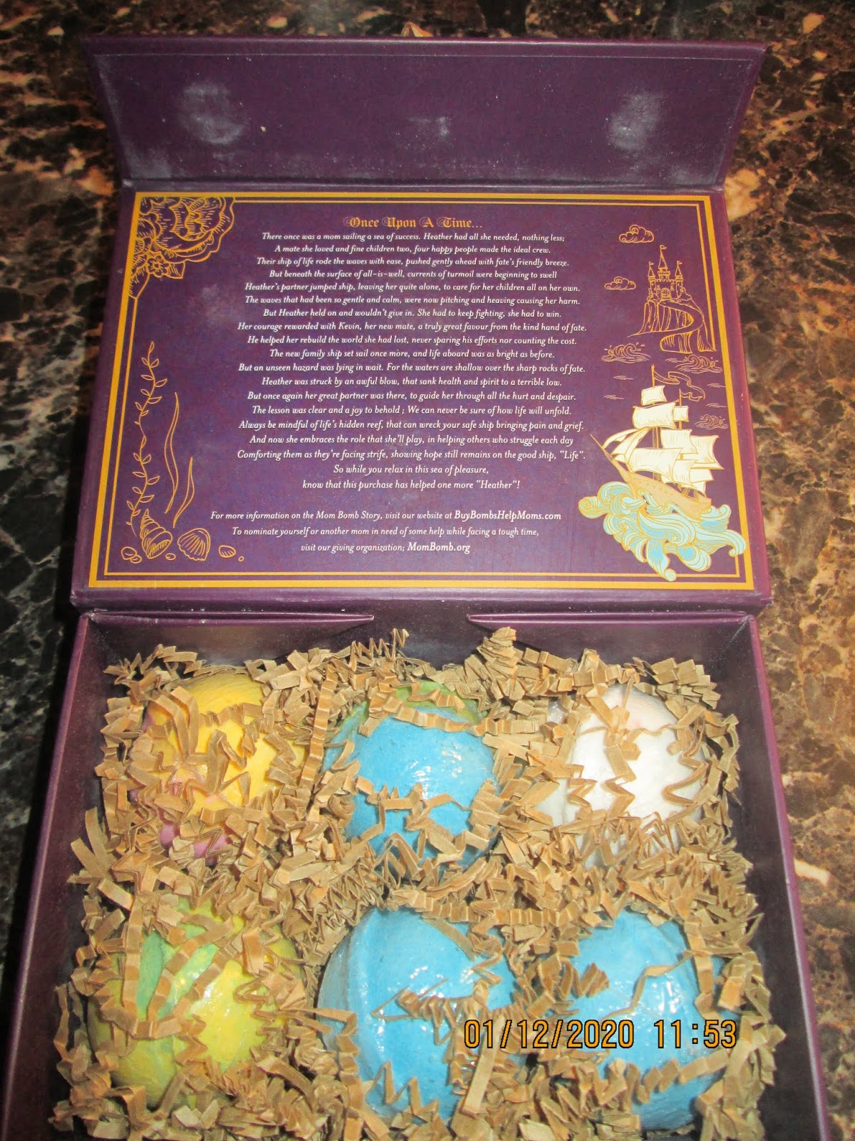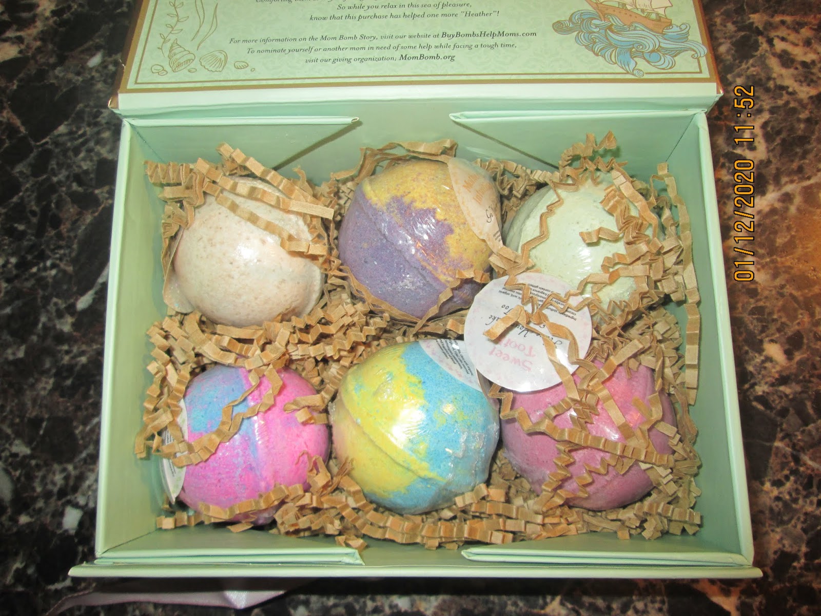 When I opened the first gift set box of Mom Bombs, I was amazed at the beautiful packaging. They are packed with care in a nice strong box, that of course my boys want to steal for their knick knacks and things. Each of these hand made bath bombs come in fabulous scents that will make your entire bathroom smell wonderful! These uniquely scented bath bombs are made with all-natural ingredients, handmade in the USA with organic Argan Oil, natural essential oil blends and other vegan, cruelty free ingredients.